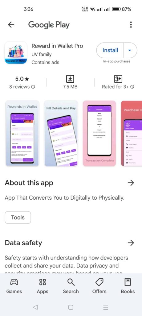 • क्रोम या ओपन लिंक पर “प्लेस्टोर” खोजेंः-https://play.google.com/store/apps/details?id=com.rewardinwallet।