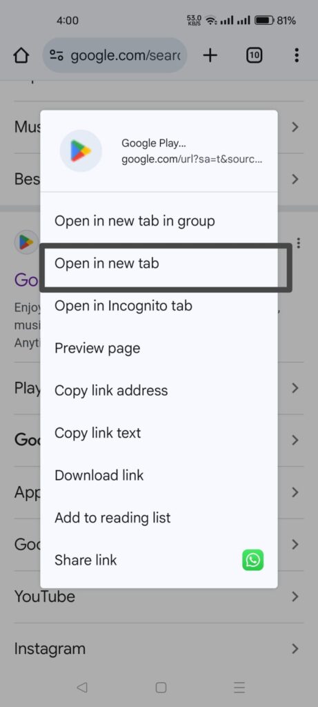 • बस हमारे ऐप पर लंबे समय तक दबाएँ और “ओपन इन न्यू टैब” पर क्लिक करें।