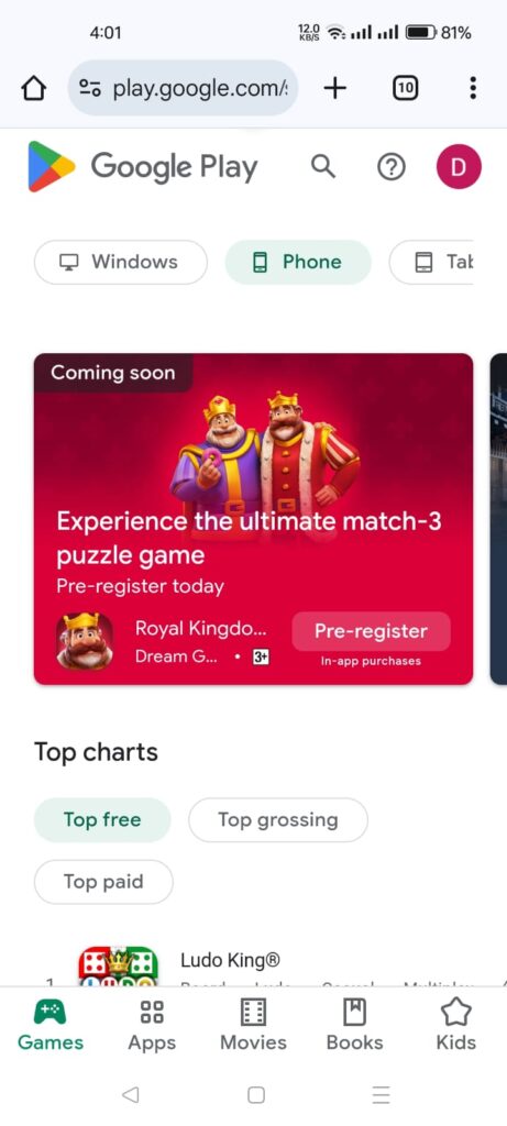 • क्रोम में प्लेस्टोर खोलें।