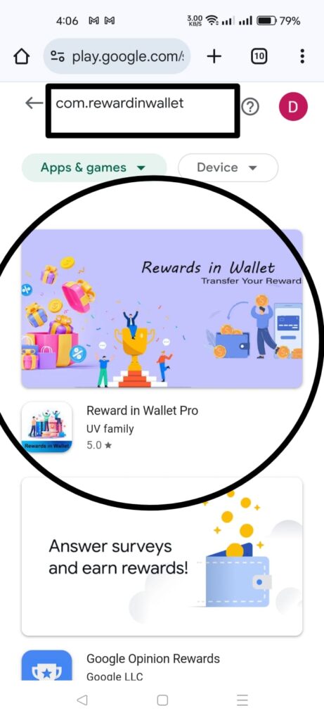 • After selecting a mail id, search on Playstore.“com.rewardinwallet”