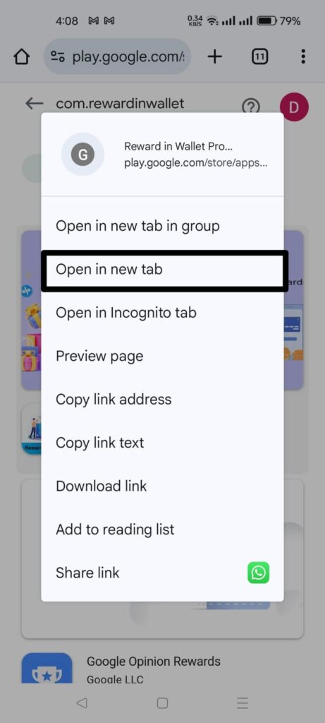 • Search “Playstore” on Crome or Open Link :- https://play.google.com/store/apps/details?id=com.rewardinwallet .