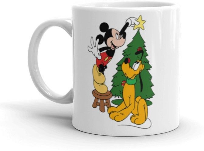 Mr UVD Micky Mouse With His Best Friend Pluto Decorating Christmas Tree Ceramic Coffee Mug
