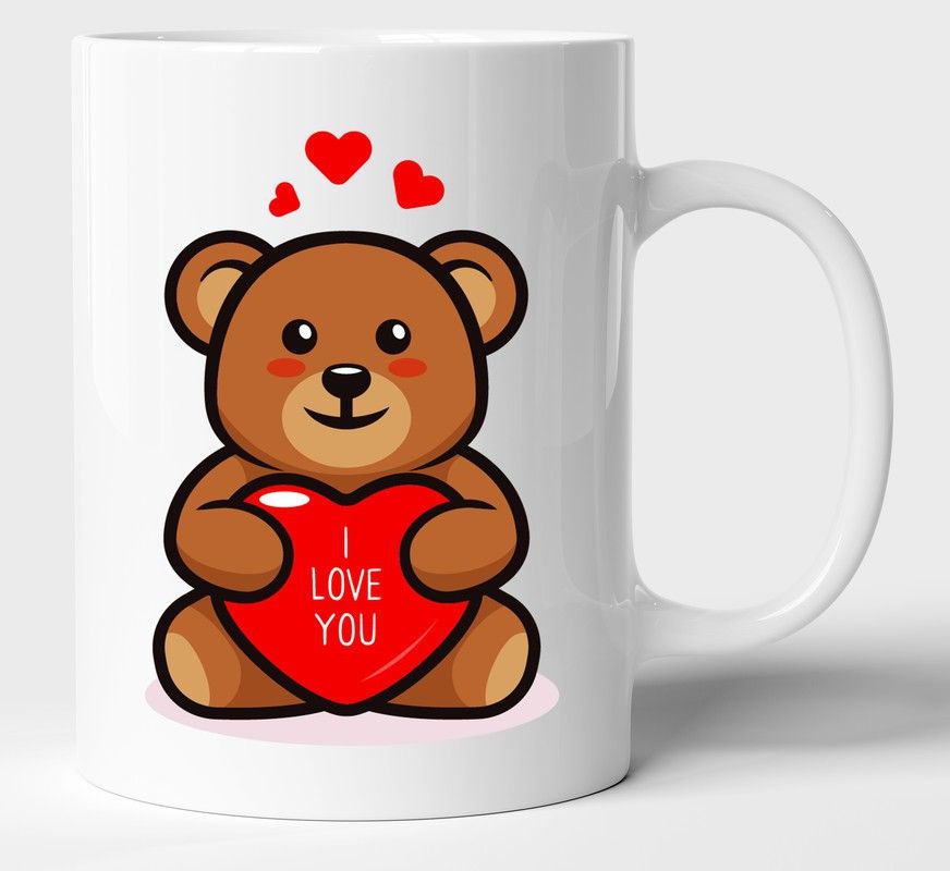 Mr UVD I Love You Heart & Teddy Bear valentine Multicolour Tea/Milk Cup Best Gift For girls men Husband Wife Ceramic Coffee Mug