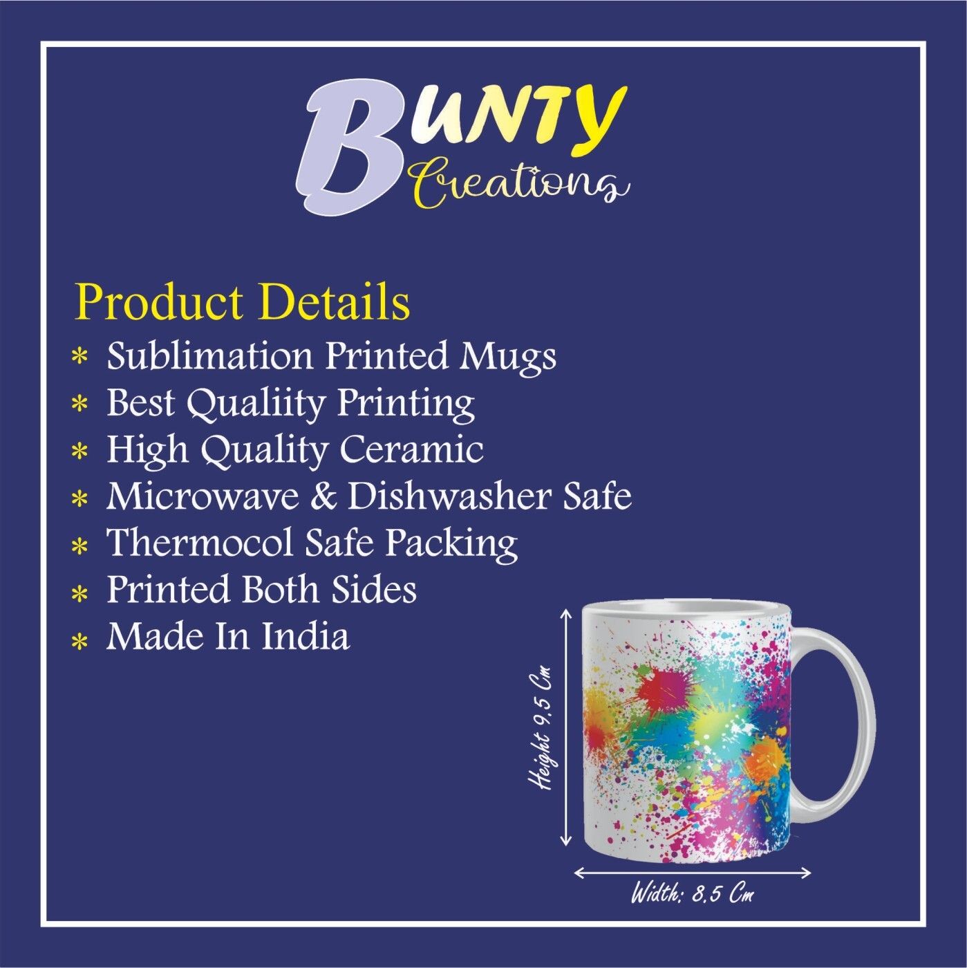 Premium Ceramic::Crystal Mug by Bunty Creations. Capacity: 300 ml.