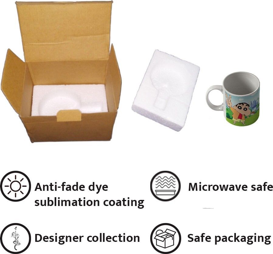 This Mug is made up of fine quality ceramic material which is very durable with long lasting color shine. The print on the mug is permanent and fade proof on both side. You can drink coffee and tea or any drink from this mug. This mug is the perfect gift for any occasions and perfect gift for those who use it everyday in the office or those who like to drink coffee and tea. Double side different Shinchan poses printed on this mug. You can gift this mug to your cute kids on their Birthday and other occasions. Package contents : 1 printed ceramic mug with three layered safe packaging.